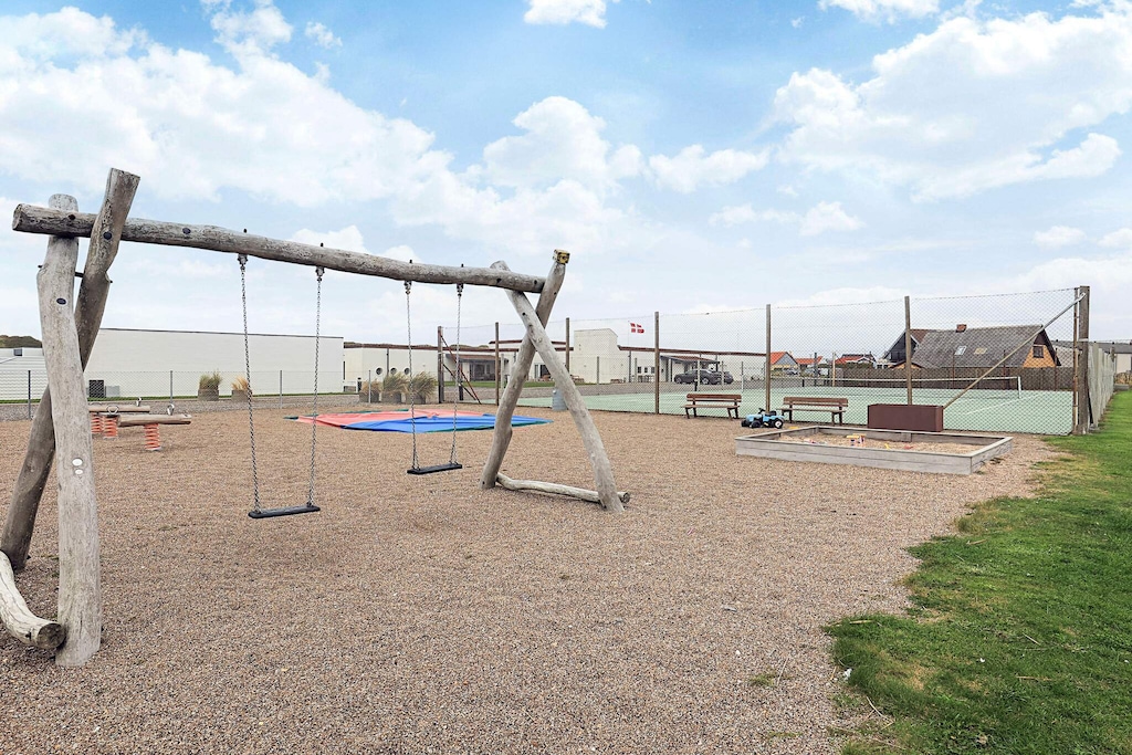 La terrazza è dotata di tavolo da giardino, sedie da giardino e barbecue. La terrazza offre una vista sulla natura circostante. Il centro vacanze offre numerose attività in comune, tra cui l'accesso gratuito alla piscina coperta del centro vacanze, con vasca separata per bambini e sauna. Aperto dal 1° aprile al 22 ottobre. All'esterno, sono disponibili campi da tennis, un parco giochi, un minigolf e un'area per falò. È presente una lavanderia a gettoni in comune. Presso l'Agger Tange Holiday Center è presente una stazione di ricarica pubblica per auto elettriche.