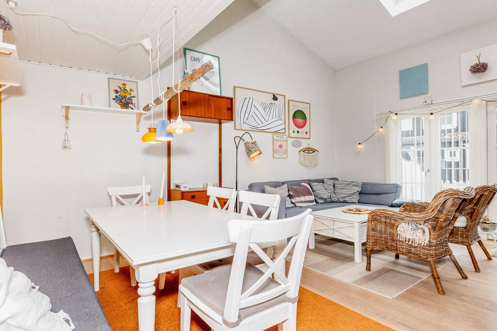 Questo grazioso appartamento per vacanze ad Agger è situato in posizione perfetta, vicino sia al mare che al porto, e offre accoglienti interni in stile scandinavo. La zona pranzo è inondata di luce naturale grazie ai lucernari, creando un'atmosfera luminosa e accogliente.