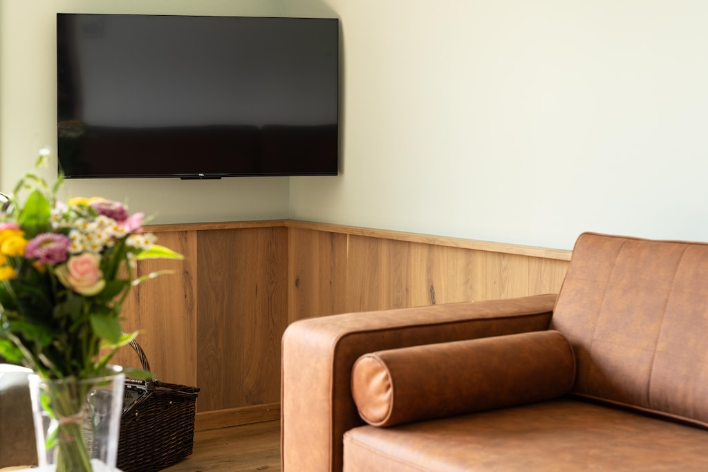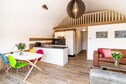 The holiday home is suitable for up to four adults and two children and features three bedrooms. One of the bedrooms has a bunk bed (for children). The living room with open plan kitchen features a comfortable sitting area and a spacious dining table. Perfect to spend some quality time together. On nice days, you can open the French doors and also enjoy the terrace with garden furniture.