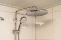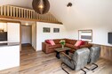 This modern holiday home is located in a small-scale holiday park, in the middle of the forest. Due to the shape of the partly thatched roof, this accommodation has a special appearance, both outside and inside.