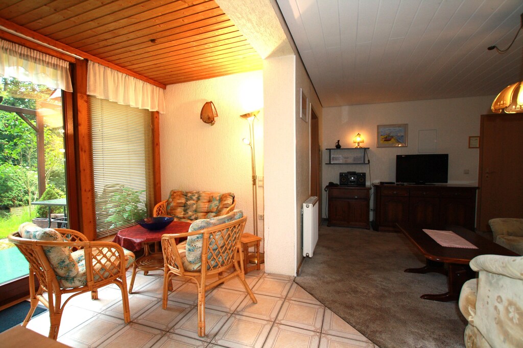 L'accogliente appartamento per le vacanze è molto apprezzato per l'accogliente giardino d'inverno, che è direttamente adiacente al soggiorno e dal quale si accede all'adiacente terrazza sud-est. Da qui si può godere di una chiara vista sulle montagne circostanti e avere accesso diretto al giardino con zona barbecue e prato.