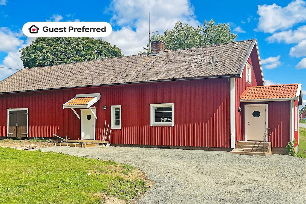 A warm welcome to Vireda and this Farmhouse, which has been completely renovated with all the amenities you need for a pleasant stay. The house is probably from the end of the 19th century, but has been completely renovated on the inside 2023. The Farmhose is part of the main house, but you have your own garden. You have a fully equipped kitchen with open floor plan to the living room which has a sofa bed for two people. In the livingroom you also have a cozy and warming stove that can be lit on chilly and dark evenings. The farmhose have a spacious bathroom with shower, WC, wash basin and of course a washing machine. Cozy bedroom with two single beds (90). Garden with a flat lawn that invite you to run and play. The house is close to paddocks and a barn with cows. Enjoy the nature, the animals and the peace! When you feel like swimming, you take a stroll to Viraholmsjön (300 m), which offers a swimming area with a sandy beach and a jetty. Nearby you also have Grönalund's cafe and flea market. Enjoy an ice cream and shop for antiques and curiosities. Popular golf course (Viraholm) 500 m away which offers an 18-hole course and restaurant. For those interested in fishing, there are many good fishing lakes in the area, Ören (5 km), Ylen (10 km) or Bunn (10 km). Feel free to take a trip to Gränna (20 km) and shop for swedish candy canes (polkagrisar) or enjoy the view from Grännaberget. If you have time to spare, take the ferry over to Visingsö with its many attractions. A warm welcome to this charming Farmhouse in Vireda!