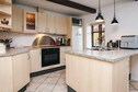 La cucina è attrezzata con tutto il necessario per cucinare deliziosi pasti per tutta la famiglia, tra cui frigorifero, piano cottura con forno separato, microonde e friggitrice ad aria, oltre a stoviglie per tutti.