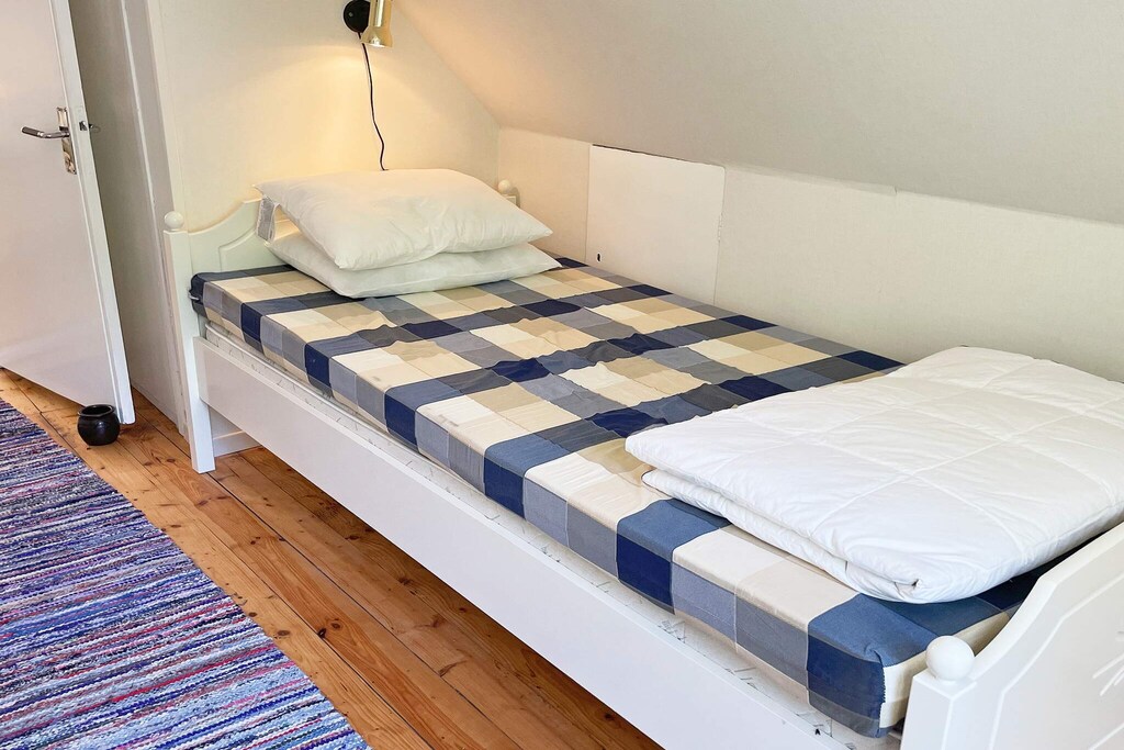 Nice house high up with a view of garden and meadow in the middle of the Moose Kingdom. Many lakes and waterways make it possible to fish, paddle and hike in any of the nature reserves and outdoor areas around here. At Ire nature school, you get to experience a living museum and a preserved agricultural landscape with the farm's animals to watch. At the entrance on the gable of the house there is a covered patio with garden furniture. Small hall inside the door with narrow stairs to the upper floor with two bedrooms. The first bedroom with a single bed is a walk-through room as the second bedroom is inside with two single beds and a pull-out sofa bed with mattress. In the kitchen downstairs, there are all possibilities for self-catering. Inside the kitchen, a fresh and bright bathroom with shower. Next to the kitchen, an open living room with a dining table and chairs for shared meals and pleasant socializing. The innermost part of the room is spacious with a sofa and armchairs in front of the tiled stove and the TV. The whole house has been renovated in recent years and has beautiful wooden floors and many windows with nice light. There is access to a washing machine in the basement with access from the outside. Blekinge is called Sweden's garden and the species richness is great in the house's own garden and immediate surroundings. For those interested in nature, there is much to discover and see. A short drive takes you to the port city of Karlshamn with the entire Blekinge archipelago at your feet. Here, daily archipelago boats go between kobbar and skarn and out to islands such as Tjärö, Tärnö and many more along the fairway. Kreativum, a discovery center for all ages can be recommended a visit as well as Eriksberg's game and safari park with a large enclosure and restaurants in the area. Welcome to Blekinge!