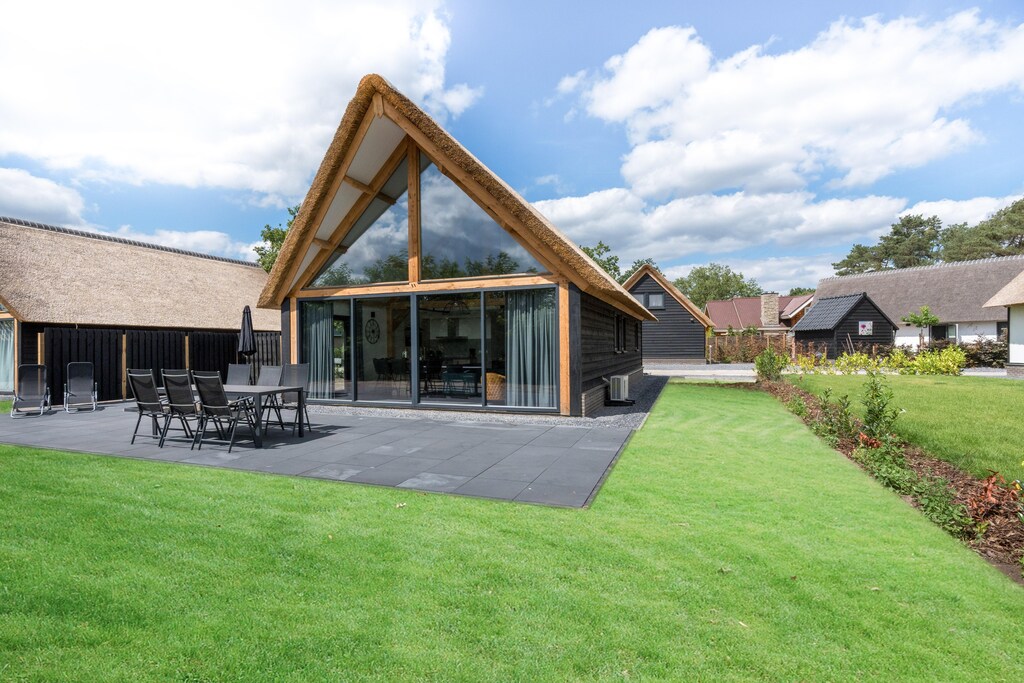 Questa splendida casa vacanze deve il suo aspetto affascinante alla combinazione di materiali pregiati come legno, pietra, vetro e un tetto di paglia. La disposizione pratica della casa ha permesso di mantenere l'altezza del soggiorno, ulteriormente accentuata dalla facciata quasi interamente in vetro.