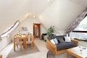 Het appartement is is lekker ruim, vooral voor twee personen. Hoewel het meubilair een beetje gedateerd is, kun je toch lekker zitten op de bank en de stoelen. Nadelen waren o.a. geen gordijn voor de badkamer. Enkel een vitrage en met het licht aan had je het gevoel dat er doorheen gekeken kon worden. Toen de verhuurder hier op aangesproken werd, lachte hij een beetje en gaf aan er over na te willen denken. Ook het warme water was erg schaars. Tel daarbij de enge wenteltrap en dan kom je tot de conclusie dat het niet echt iets is voor ouderen. De omgeving is prachtig en er is veel te zien. Een voordeel is dat de super markt op 300mtr. afstand ligt en dat hetrestaurant De Kleine Köning in Bad Zwesten voor weinig geld hele lekkere maaltijden serveert.