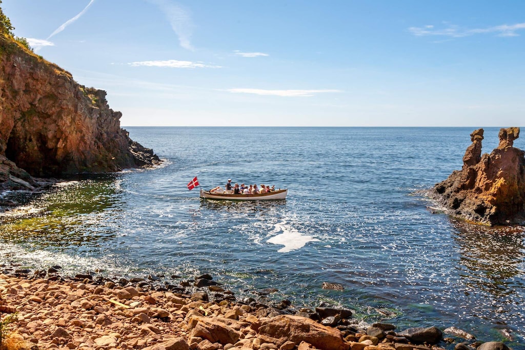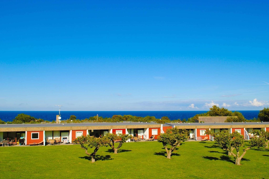 Stay in a former apple plantation in Allinge As the name suggests, the holiday park Æblehaven is located in a former apple plantation in Allinge-Sandvig. In this cozy area you will still find apple trees that blossom beautifully in spring, and in late summer you can taste the delicious apples. Holiday Park Æblehaven offers facilities for young and old. In summer, water-lovers big and small can splash in the pool, or head for the beach, 400 metres from Æblehaven. You can also play in the playground and bouncy castle. Holiday homes with space for the family Æblehaven offers lovely holiday homes with beds for 4-6 people. Choose between holiday homes with or without sea view. Common for the holiday homes is that they all have a terrace, where you can relax inbetween your adventures on Bornholm. Explore the area in and around Allinge-Sandvig Holiday Park Æblehaven is wonderfully located near the beach and attractions. From Æblehaven you can walk to Allinge's old town, or you can head for Næs beach. Stroll around the timber-framed buildings in Allinge's old town, head for the harbour and Allinge town centre, where you'll find restaurants, shops and a friendly atmosphere.