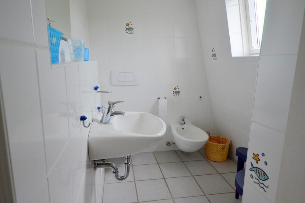 Questa casa vacanze a forma di stella marina ha una spaziosa terrazza coperta e un giardino, hai 80 m2 di piacere abitativo a tua disposizione. Soggiorno con camino e una moderna cucina aperta. Al piano terra c'è anche un bagno con doccia e una camera da letto con 2 posti letto. Al piano superiore ci sono anche 2 camere da letto con 2 posti letto ciascuna e un secondo bagno con lavandino e lavabo. Al piano terra ci sono piastrelle ovunque. Al piano superiore c'è linoleum ovunque.