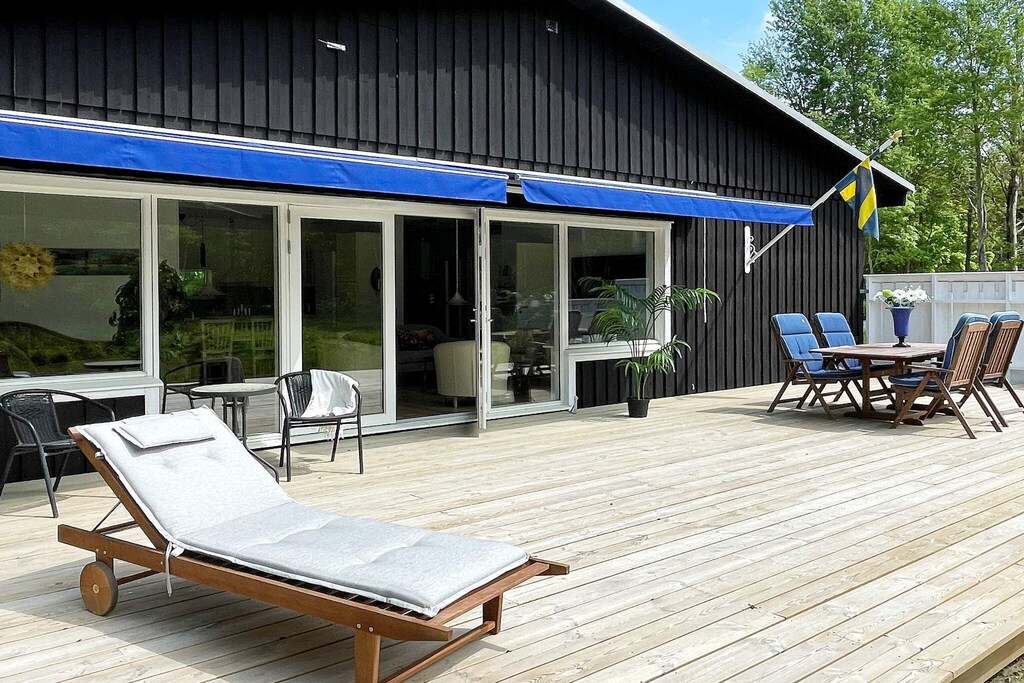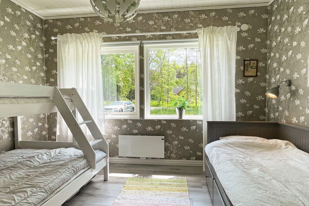 Newly built house in Binnerbäck on Öland, where you can enjoy the peace and the close to nature while being close to Byrum's wonderful beaches. Here you can enjoy the sunny days of the holiday on the large patio deck where there is outdoor furniture, deckchairs, a barbecue and a magical view. The house has an open living room with kitchen, dining area and sitting area and large window sections facing the terrace. You have two bedrooms, one with a double bed, the other with a single bed and a family bunk bed where the lower bed is 120 cm. There is also a foldable extra bed available if you wish. There is also a foldable extra bed available if you would like. In that case, contact the service office. The large luxurious fully tiled bathroom is equipped with wc, sink, shower and washing machine. You have a 65 inch TV and a large range of channels with various sports and movie channels. A travel cot for children is available as well as a high chair. Enjoy nice walks/runs around Hornsjön. You only have 6 km to Löttorp, where there is a grocery store, paddle and many wonderful restaurants. Feel free to book a table at restaurant Kalk or Morells for a good meal. The Lamb & Pig is also usually popular. You are also close (10km) to Böda's undulating beaches. Byxelkrok with its boathouses down by the harbor is also a hot tip. Also, don't miss buying Öland special cakes from any cake stand. Have a wonderful holiday.