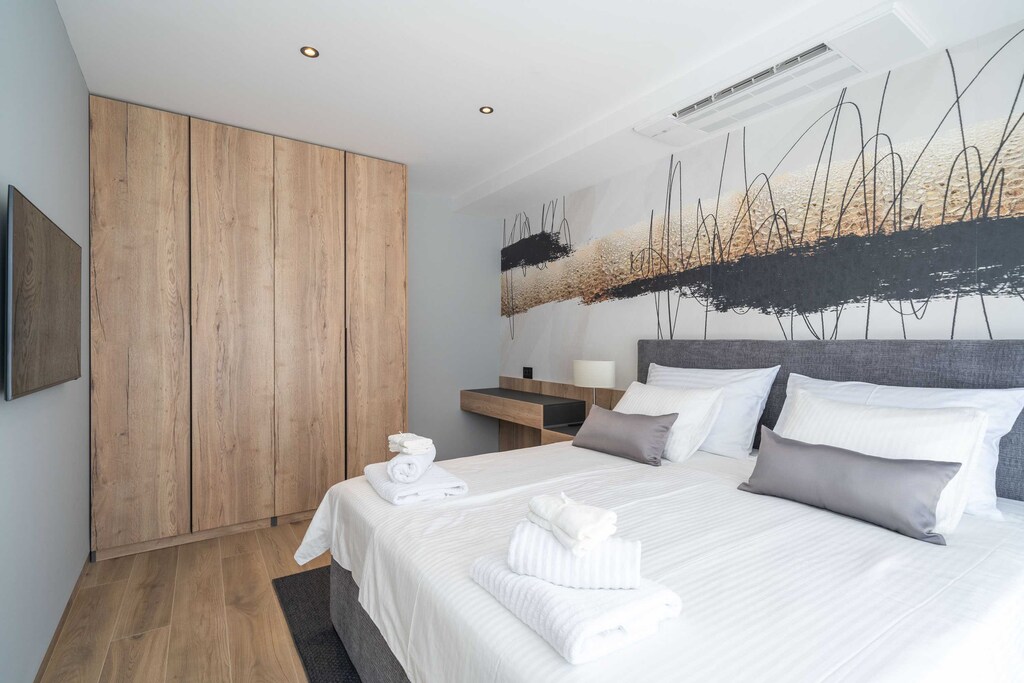 This Luxury one-bedroom apartment features free WiFi, air conditioning, living room with SAT TV, dining area and well equipped kitchen. Private bathroom comes with shower and hair dryer. Hairdryer and baby cot are also on guests disposal.