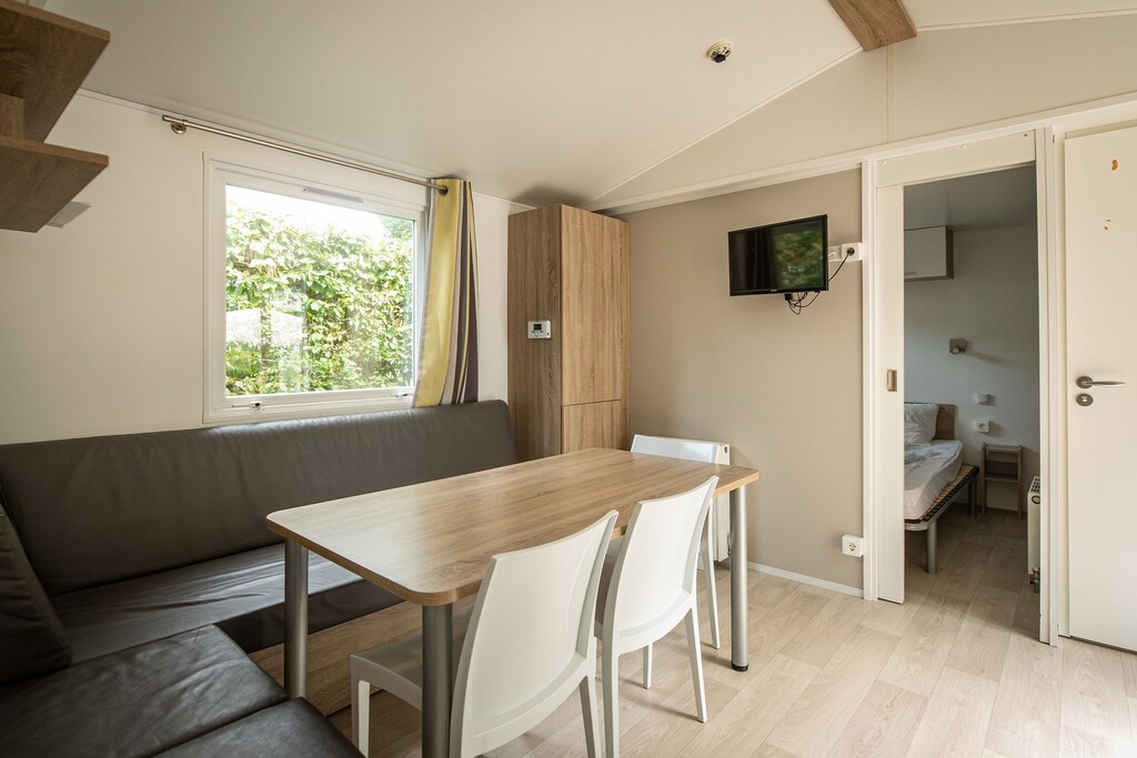Situato vicino all'ingresso del Camping Petite Suisse a Dochamps, questo grazioso chalet indipendente è immerso nel cuore panoramico delle Ardenne belghe. Progettato con cura, con porte scorrevoli e interni accoglienti, è ideale per famiglie e ospiti in cerca di comfort senza scale. Uscite sulla vostra terrazza privata in legno, rilassatevi sotto l'ombrellone o godetevi l'aria fresca mentre bambini e animali domestici scorrazzano liberamente nelle vicinanze. Una piscina esterna riscaldata in comune è perfetta per un tuffo rinfrescante nelle giornate di sole.