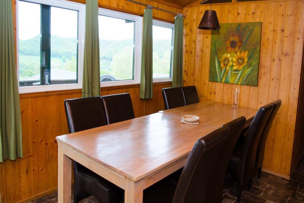Uno chalet spazioso e ben attrezzato, questa sistemazione di 54 m² è perfetta per un massimo di sei persone. Dispone di una comoda zona giorno con zona pranzo e soggiorno, TV e camino elettrico, rendendolo ideale per il relax. Lo chalet offre tre camere da letto: una con un letto matrimoniale a molle, una con due letti singoli a molle e una con un letto a castello, tutte con coperte e cuscini forniti. Gli ospiti possono godere di una splendida vista sulla valle della Mosa dalla terrazza arredata con veranda. Lo chalet accetta animali domestici e offre la connessione WiFi gratuita, anche se è possibile parcheggiare al massimo un'auto presso la sistemazione.