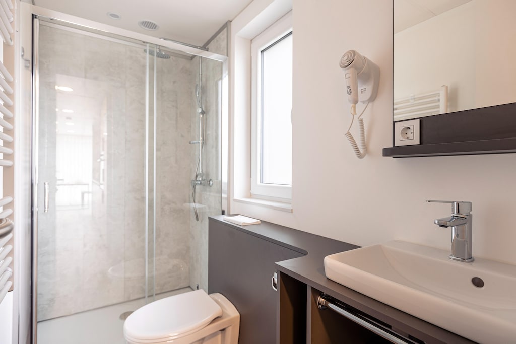 Lo chalet è moderno e completamente arredato. Nel soggiorno troverete un televisore e un comodo divano letto. La cucina a vista con isola cottura comprende: dotato di forno e lavastoviglie. Ci sono due camere da letto, una con letto matrimoniale e una con due letti singoli. Il bagno ha una doccia e servizi igienici. Per un maggiore comfort, lo chalet è dotato di aria condizionata.