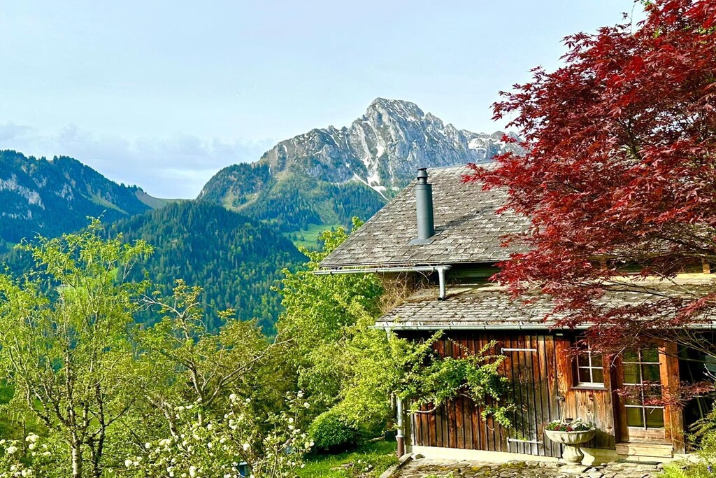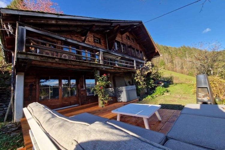 Scopri il fascino di uno chalet di 200 anni a Rougemont, Gstaad, ideale per una vacanza sugli sci in famiglia o in gruppo. Questo spazioso rifugio con 5 camere da letto dispone di un ampio balcone e di un camino esterno con splendide viste sulle montagne. Rilassati sui mobili da giardino o passeggia nel giardino per immergerti nel paesaggio.
