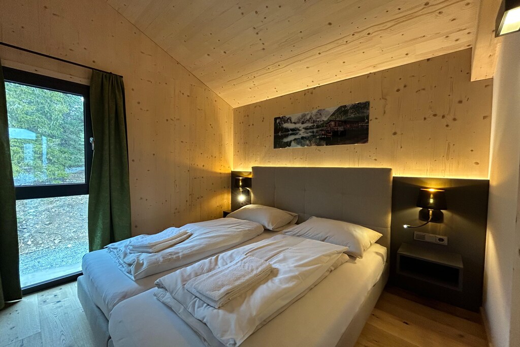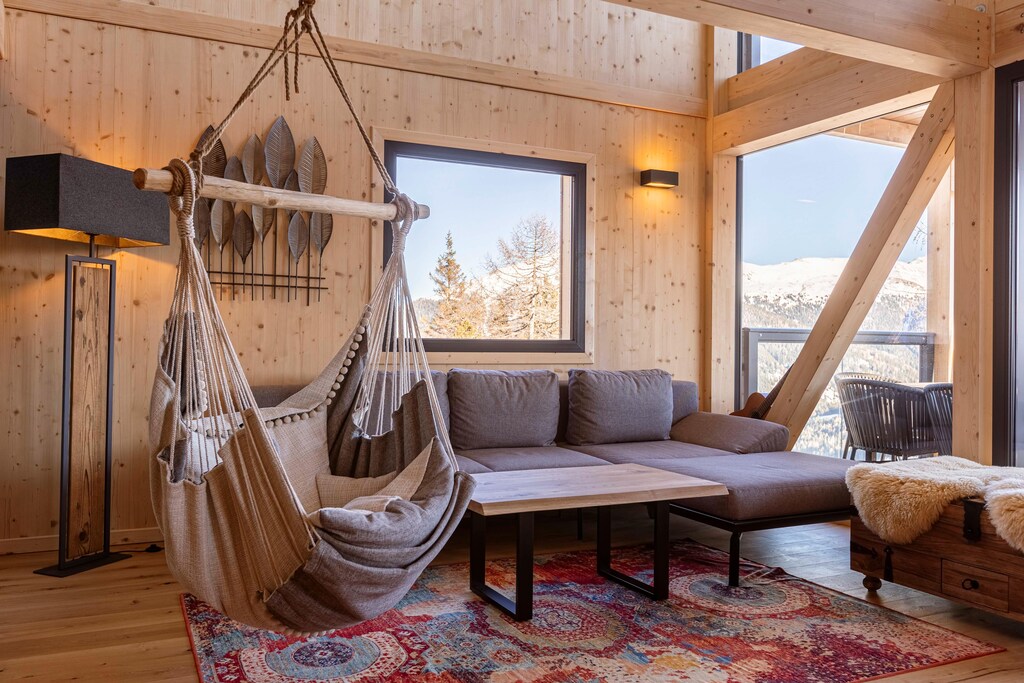 Lo chalet dispone di quattro invitanti camere da letto: due al piano terra, ciascuna con un letto matrimoniale, bagno privato e balcone privato, e due camere matrimoniali aggiuntive al piano superiore. La cucina aperta completamente attrezzata include posate, pentole, piano cottura in vetroceramica, forno, lavastoviglie, frigorifero con congelatore, tostapane, bollitore, cuociuova, macchina per il caffè con filtro e una macchina per il caffè a capsule Nespresso. Ulteriori comfort includono Wi-Fi gratuito, TV, una griglia elettrica (non serve carbone), un asciuga scarponi da sci e una sedia a dondolo nella zona soggiorno. Per l'intrattenimento, lo chalet offre anche una chitarra, giochi e libri.