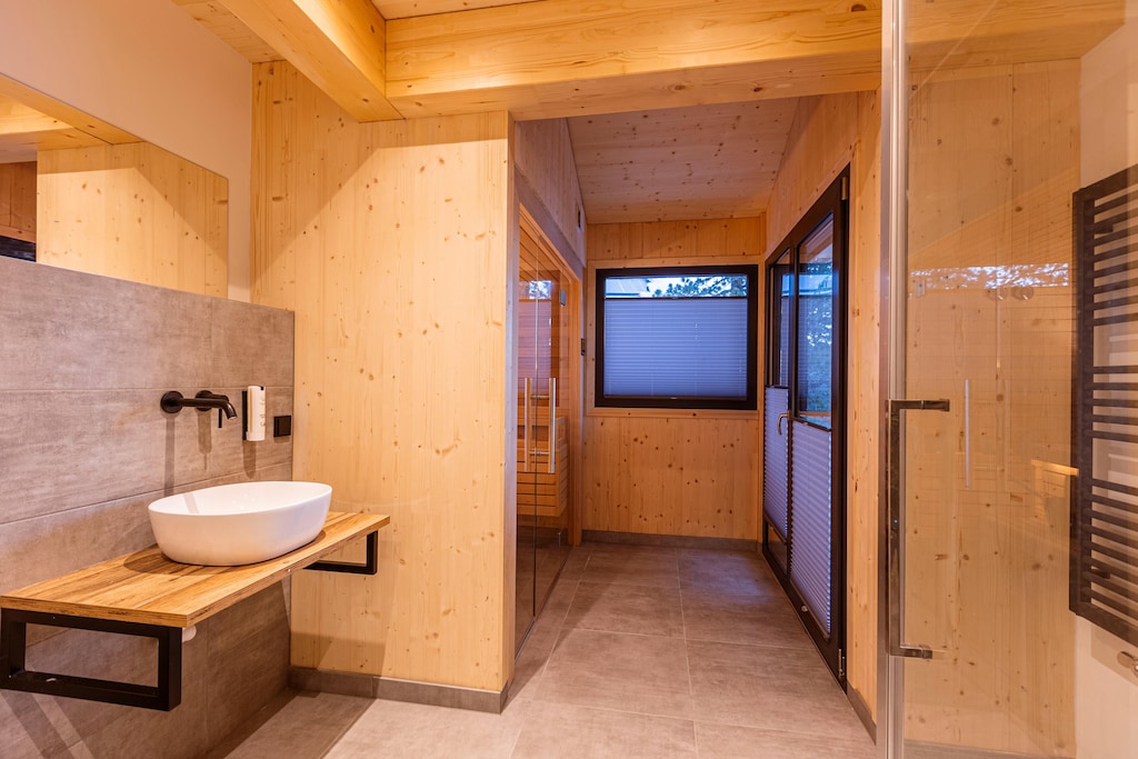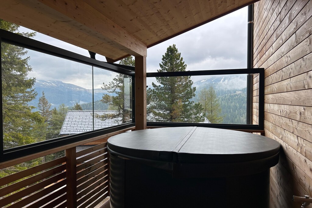 Questo invitante chalet in legno massello, che si estende su 135 m² su due piani, può ospitare comodamente fino a 8 persone. Lo chalet dispone di quattro camere da letto ben arredate: una con letto matrimoniale, bagno privato e balcone al piano terra; un'altra con letto matrimoniale e balcone al piano terra; una terza camera da letto al piano terra con letto matrimoniale e bagno privato; e una camera da letto al piano superiore con letto matrimoniale e letto matrimoniale separato, completata da un bagno con vasca. Rilassati nella sauna finlandese al chiuso o goditi la vista mozzafiato dalla vasca idromassaggio sul balcone, che non include una funzione idromassaggio.