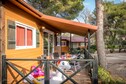 Bungalow di 48 m2 con una capacità massima di 5-6 persone con soggiorno, cucina, bagno, 1 camera matrimoniale e 1 camera con 1 letto singolo e 2 letti a castello.
