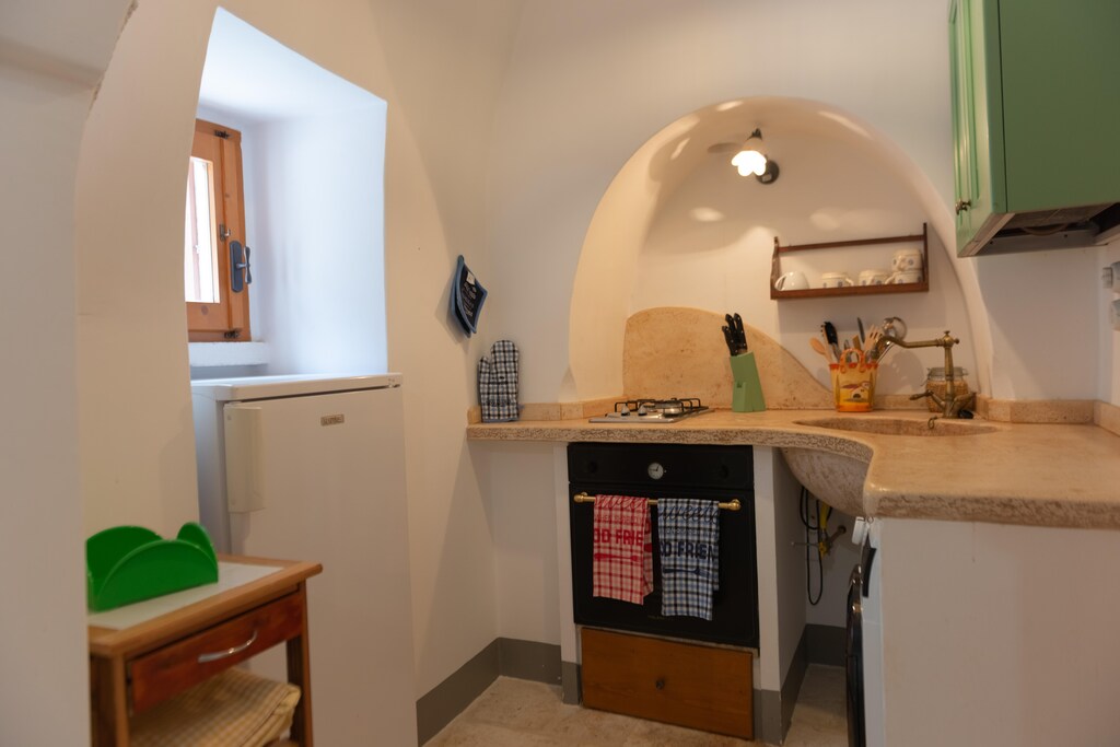 I trulli sono composti da due unità: la prima è dotata di soggiorno-cucina con TV, due camere da letto (una matrimoniale, una doppia) e un bagno con doccia; il secondo ha una cucina ben attrezzata con TV, Due camere da letto (una matrimoniale, una doppia) con bagno. L'intera proprietà può ospitare 8 persone