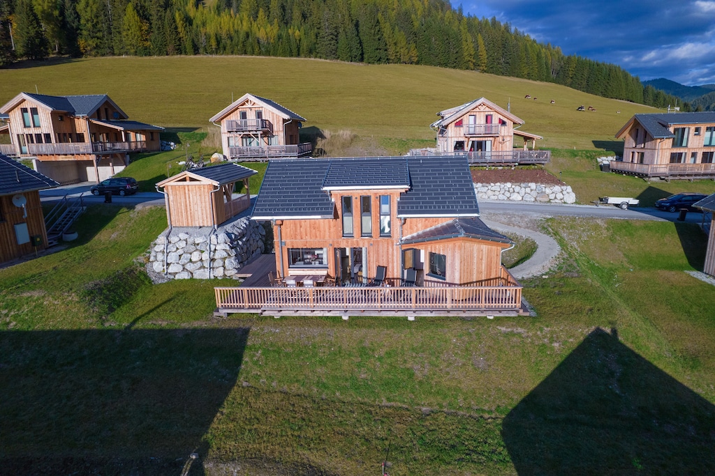 Questo accogliente chalet indipendente in legno per un massimo di 8 persone si trova in un complesso (Almdorf) a Hohentauern in Stiria ed è ideale per un gruppo più numeroso o 2 famiglie.