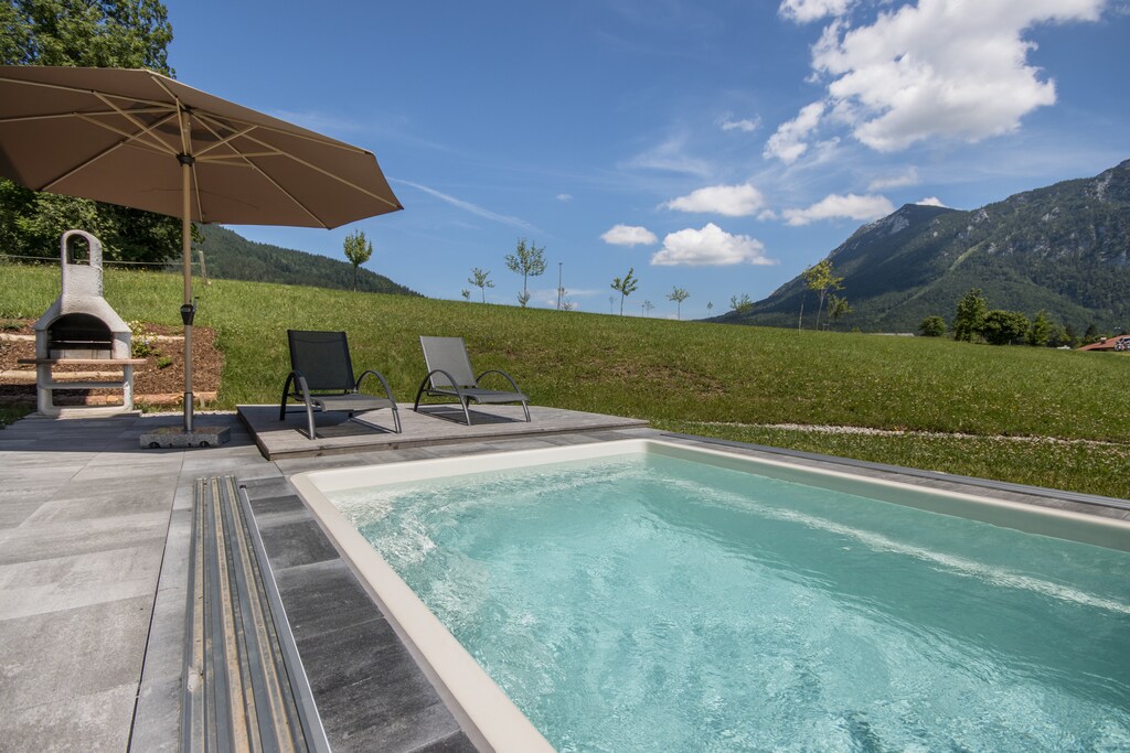 Lo Chalet Gamsknogel è lo chalet più alto della località turistica di Inzell, con una splendida vista sulla località e sulle Alpi del Chiemgau. Lo chalet offre il massimo comfort con stufa a legna, piscina privata all'aperto, vasca idromassaggio esterna riscaldata tutto l'anno e sauna. La capriata del tetto a vista in legno di abete rosso naturale tagliato conferisce allo chalet un carattere accogliente. Al piano terra, oltre al bagno con cabina doccia in pietra naturale e accesso alla sauna, si trova anche l'ampio soggiorno e zona pranzo con ampia cucina angolare. Oltre alle tre camere da letto, al piano superiore è presente anche un bagno con vasca. Dal soggiorno si accede direttamente all'ampia terrazza con piscina e salotto. Un altro punto forte è la vostra area barbecue con posti a sedere all'aperto e un grande ombrellone.