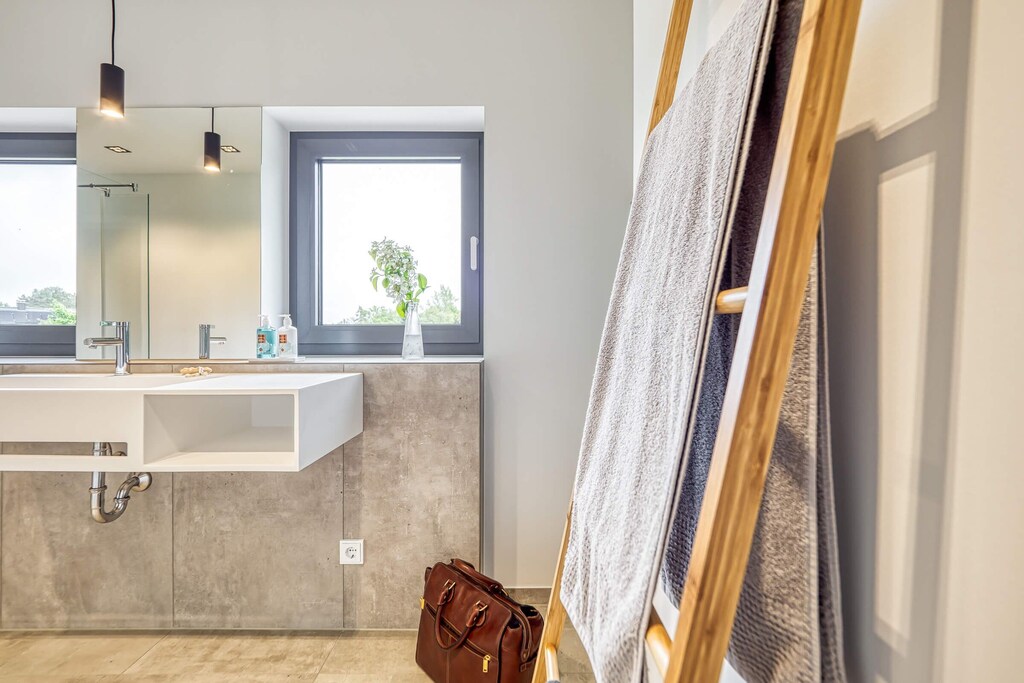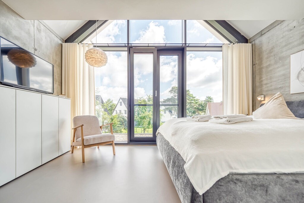 Questa bella casa per le vacanze con la sua straordinaria architettura si trova in un'idilliaca e grande proprietà nel villaggio di pescatori di Fuhlendorf. Offre molto spazio per 4 ospiti (2 camere da letto con letti matrimoniali di alta qualità) e dispone di un ampio soggiorno-sala da pranzo, un invitante bagno con doccia con WC e bidet al piano superiore e un bagno per gli ospiti al piano terra. Al piano terra si trova un soggiorno-pranzo di ca. 38 mq con un comodo divano e TV satellitare. Oltre ad una cucina completamente attrezzata, c'è uno spazioso tavolo da pranzo. Un ampio giardino esposto a sud-ovest confina con la terrazza. Qui potrete godervi ogni secondo della vostra vacanza in un ambiente lussuoso. Potrete rilassarvi in pace e tranquillità nella zona balneare naturale sulla laguna o fare una gita alla vivace spiaggia del Mar Baltico a Zingst, che dista 17 chilometri. Villaggi idilliaci e paesaggi unici aspettano di essere scoperti intorno alla laguna.