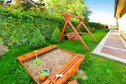 Sulla proprietà c'è un parcheggio, noleggio biciclette e un bel parco giochi (trampolino, casa con scivolo, giocattoli).