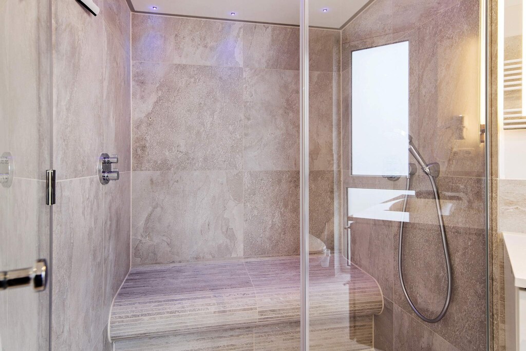 Interni, l'appartamento è progettato per offrire comfort e relax. La cucina-soggiorno a pianta aperta crea uno spazio caldo e accogliente per cucinare, cenare e rilassarsi insieme, mentre il camino a bioetanolo aggiunge una luce accogliente la sera. Una TV con lettore Blu-Ray e soundbar Bluetooth garantisce un intrattenimento sempre a portata di mano. Il bagno è un piccolo rifugio a sé stante, dotato di doccia a pioggia con funzione bagno turco e riscaldamento a pavimento. Due camere da letto, ciascuna con letto matrimoniale e TV a schermo piatto, offrono un rifugio rilassante a fine giornata.