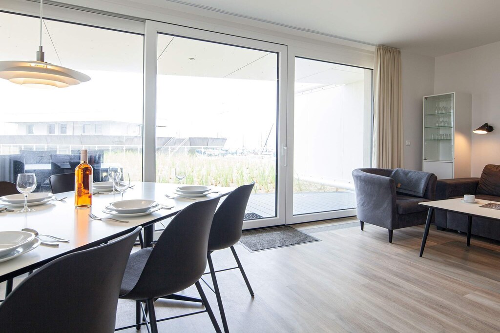 Svegliatevi con lo scintillio del Mar Baltico e il fascino del porto turistico proprio fuori dalla porta. Questo moderno appartamento al piano terra unisce comfort e viste mozzafiato, permettendovi di godere della bellezza dell'acqua dall'alba al tramonto.