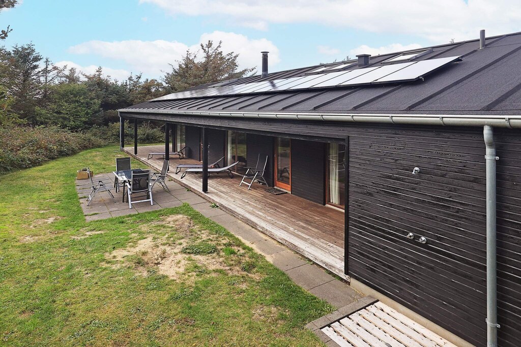 Questo delizioso cottage a Lønstrup vicino al Mare del Nord si trova in una bellissima zona con foreste e dune su un bel terreno naturale di grandi dimensioni. Il cottage è a soli 200 metri da una bella spiaggia sabbiosa e dispone di una bella sala attività con ping pong e freccette. La cucina e il soggiorno sono in collegamento aperto tra loro con la stufa a legna al centro, così potrete goderne il calore sia in cucina che in soggiorno. Il grande casolare può ospitare 10 persone. Ci sono un totale di quattro camere da letto - tre con letti matrimoniali e una camera con due letti singoli. Inoltre, ci sono due letti sul soppalco del cottage. Il cottage ha due bei bagni. Il bagno principale ha una sauna e una spa, in cui puoi davvero rilassarti e goderti la tua vacanza. Dal soggiorno e dalla cucina si accede sia ad un terrazzo coperto che scoperto oltre che ad una doccia esterna. Il casolare è dotato di pompa di calore a risparmio energetico e geotermia. L'intero cottage è dotato di riscaldamento a pavimento. Graziosi cottage a Lønstrup vicino al Mare del Nord.