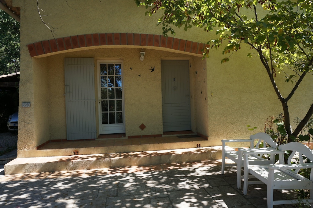 Particolarmente spaziosa è la terrazza coperta, accessibile tramite portafinestra dal soggiorno. Qui troverete un grande tavolo da pranzo con sedie e diverse aree salotto per gustare un bicchiere di rosé di produzione locale. Godetevi un'accogliente serata barbecue o rilassatevi con un buon libro nel luminoso soggiorno con camino. La cucina adiacente dispone di un bancone all'americana e di una macchinetta del caffè. La struttura offre un parcheggio per 2 auto.