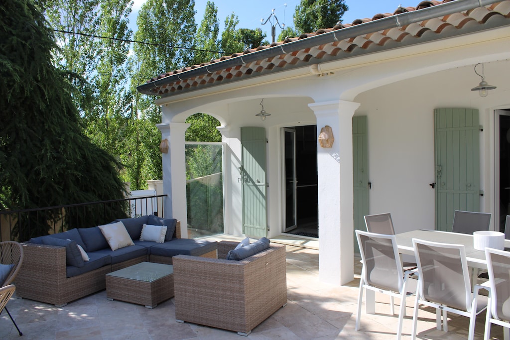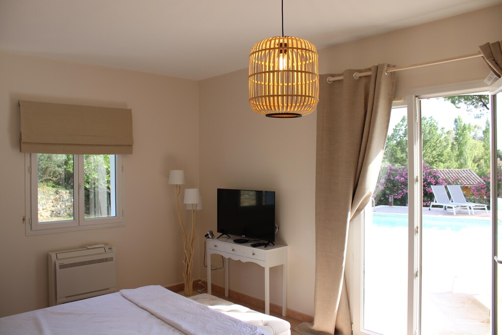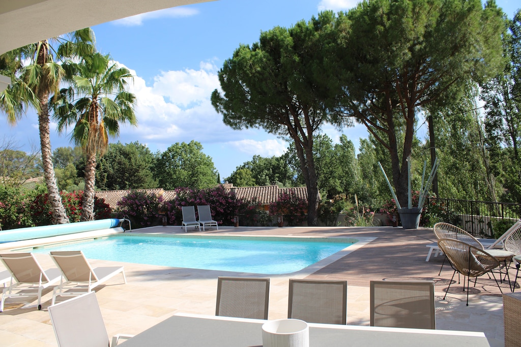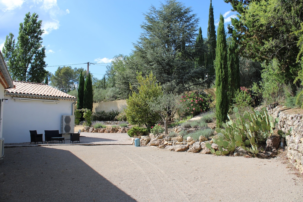 Circondata dal verde rurale e lungo una strada tranquilla tra Lorgues e Saint-Antonin-du-Var, la bellissima Villa des Trois Palmiers si trova in una tenuta di 1700 m² con un campo da bocce e palme. Varcato il cancello d'ingresso elettrico c'è spazio per circa 4 auto.