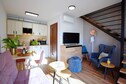 Case vacanza a due piani con terrazze e set di mobili da giardino e barbecue. Al piano terra si trova un confortevole soggiorno con divano letto, TV e tavolo con sedie. Il soggiorno è collegato ad una cucina ben attrezzata. C'è anche un bagno con doccia al piano terra. Al piano superiore ci sono 2 camere da letto separate. C'è l'aria condizionata con funzioni di raffreddamento e riscaldamento. È disponibile la connessione Internet wireless.