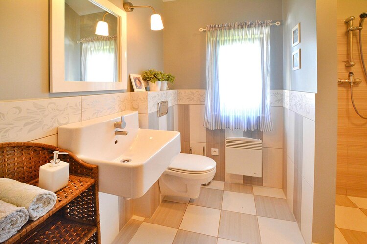 La confortevole casa vacanze su un piano offre agli ospiti un ampio soggiorno collegato ad una cucina ben attrezzata. Il soggiorno è dotato di camino, TV e tavolo con sedie. Ci sono 4 camere da letto e 2 bagni a disposizione degli ospiti. C'è una lavatrice. La casa dispone di riscaldamento (elettrico e ausiliario con camino a legna). La casa dispone di un ampio terrazzo coperto con comodi mobili da giardino e attrezzatura per il barbecue. È disponibile la connessione Internet wireless.