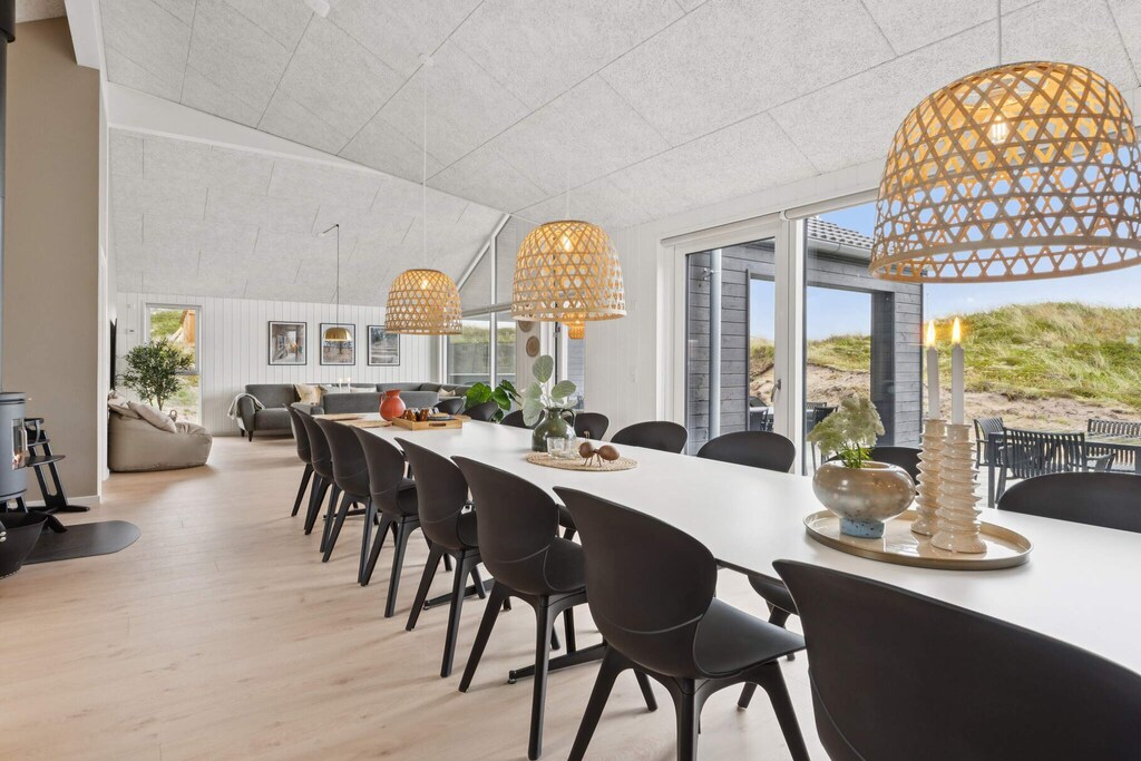 All'esterno, l'ampia terrazza comprende una vasca idromassaggio in legno, una doccia esterna e una sauna, per un benessere a cielo aperto. Cenate all'aperto al lungo tavolo mentre i bambini giocano sul trampolino o sulle altalene. Un accogliente rifugio nelle vicinanze offre la possibilità di dormire sotto le stelle e ammirare la vista mozzafiato sulle dune.