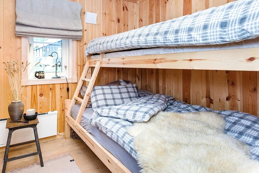 Great cabin in magnificent nature at Treungen. Great hiking opportunities all year, alpine or cross-country skiing, swimming or berry picking. Swim in the lake Bjønntjønn from beach or cliffs. Aslo great swimming spots in the famous Jettegrytene, and Fjone beaches with lovely sand. The cabin has great standard and contains a spacious open living room/kitchen with plenty of space for everyone around the table. 4 bedrooms, one with a double bed and 3 with bunk beds. Some of the lower bunks are double, so it is possible to bring two extra children. Living room with TV, internet and a cozy fireplace. Two bathrooms and a lovely sauna for cold days. Outside there is a large terrace and a great barbecue area with a fire pit. Swing stands on the property and a playground in the immediate area with play equipment and football goals. A short drive to Gautefall alpine resort (5 km) with slopes and lifts for everyone in the winter, also great for biking in the summer. Several fishing lakes in the area, the closest are Rosstjønn and Bjønntjønn. Fishing licenses are purchased locally, information can be found on the internet, often there is also information on the notice board by the rubbish bin. The Fjone ferry in Nissedal, MF Nisser, takes you across the Fjonesundet between Fjone and Framnes, a 500 m wide strait in Lake Nisser. The ferry connects the east and west sides of Nisser and is part of county road 3380 towards rv. 41, Telemarksvegen. Fjoneferja is Norway's smallest cable ferry and has room for three cars or one truck/bus. Owned by Nissedal municipality, ferry timetables and prices can be found on Visit Telemark's website. Hulfjell family park has animals, a water park, and farm activities, and is a popular place to visit in the summer, approx. 37 km from the cabin.