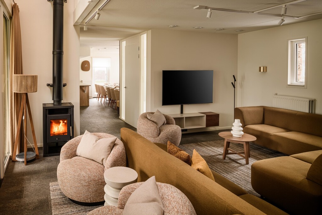 Nascosta all'interno del pittoresco Resort Maastricht, questa ampia casa colonica indipendente con 12 camere da letto è perfetta per famiglie numerose, gruppi di amici o ritiri. Unendo il carattere tradizionale al comfort contemporaneo, gli eleganti interni dispongono di un'accogliente stufa a legna, un'ampia zona giorno e una cucina moderna completa di frigorifero americano, perfetta per pasti di gruppo e momenti di condivisione. Con un cortile privato, una calda luce naturale e spazio per un massimo di 24 ospiti, questa casa rende le riunioni indimenticabili.