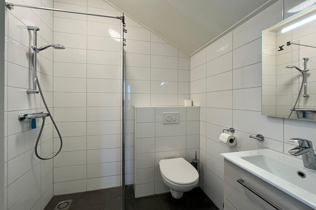Questo spazioso e moderno bungalow è perfetto per famiglie o gruppi, offrendo due piani di comfort. Al piano terra si trovano un soggiorno con smart TV e una cucina a pianta aperta con lavastoviglie e forno a microonde. Due camere da letto triple offrono ampio spazio per dormire, mentre un bagno con doccia e un WC separato nel corridoio aggiungono ulteriore comfort. Al piano superiore, gli ospiti troveranno una camera da letto matrimoniale e un secondo bagno con doccia. Tutti i letti sono singoli con box spring, che possono essere trasformati in letti matrimoniali all'occorrenza.
