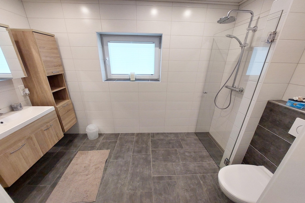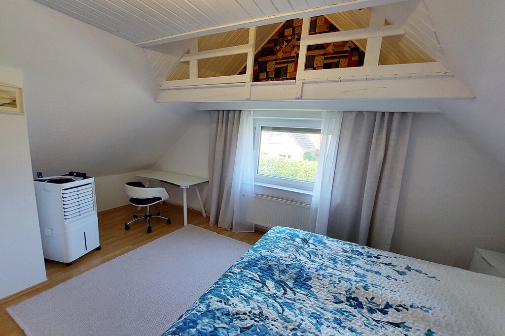 La luminosa zona d'ingresso conduce alla zona giorno e pranzo combinata. La cucina è dotata di tutto il necessario per il vostro soggiorno. C'è anche un camino qui e l'accesso alla terrazza. C'è anche una camera da letto con un letto a molle al piano terra e un bagno con WC e cabina doccia. Al piano superiore ci sono altre due camere da letto; una di queste con un altro letto a molle, nella seconda camera c'è un divano letto, che offre spazio anche per 2 persone. Pertanto la casa è adatta per 4 - 6 persone. C'è anche un altro bagno con WC e doccia su questo piano. Potete portare con voi anche il vostro cane, il giardino è circondato da una fitta siepe. C'è anche un ampio posto auto coperto a disposizione per la vostra auto. La casa si trova in un tranquillo insediamento nel quartiere di Nesse e la spiaggia di Neßmersiel dista circa 4,5 km.