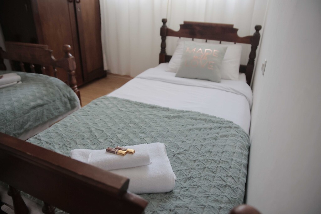 This two bedroom apartment with terrace can accommodate up to six people. It features Cable TV, central heating as well as seating area. Kitchen is well equipped with an oven, refrigerator, water kettle, stove, microwave, coffee maker and kitchen utensils. One room is furnished with large double bed, while the other one comes with two single beds. The private bathroom comes with a shower and toilet. Free toiletries, hair dryer as well as linens and towels are at your disposal. You have access to iron and ironing board.