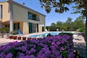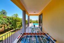 Grazie alle ampie finestre e al ballatoio si ha una vista perfetta sul giardino mediterraneo con la propria piscina.
