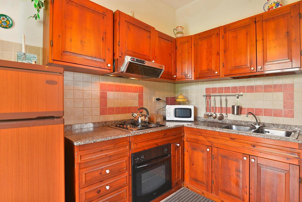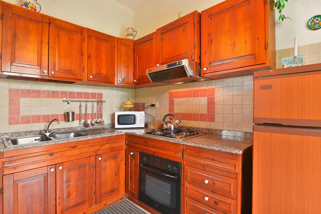 La superficie abitabile di 65 mq della casa al primo piano è adatta per quattro persone. Soggiorno con zona pranzo e aria condizionata, cucina con angolo cottura, una camera matrimoniale, una camera con due letti singoli. Bagno con doccia/WC, WC con WC.