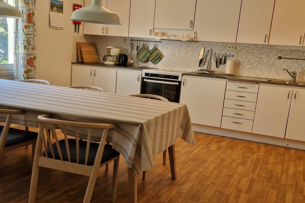 Villa confortevole e moderna con una deliziosa posizione indisturbata, non lontano da bellissime spiagge sabbiose e con un ruscello vicino alla casa. A poco più di un miglio dal piacevole, ma un po' turistico & # 8221; la località di villeggiatura estiva di Frillesås. Qui puoi rilassarti in una bella villa situata lungo una piccola strada, fiancheggiata da poche altre ville. Vivi con accesso a un grande appezzamento che confina con il Löftaån dove puoi pescare un po '. Con le scarpe da passeggio ai piedi, raggiungi spiagge sabbiose poco profonde dopo poco più di 10 minuti a piedi. Oppure prendi la macchina per qualche minuto. A Frillesås ci sono sia ristoranti che negozi, il che semplifica la vita di tutti i giorni. Se sei stanco della sabbia e delle spiagge poco profonde, non sei lontano dai bagni rocciosi di Torstensvik. In questa moderna villa di 156 m & # 178; al piano inferiore c'è una cucina molto carina dove siete invitati a riunirvi, due camere con letti singoli che potete scegliere di separare o far scorrere insieme in un letto matrimoniale, un bel bagno, lavanderia e un soggiorno più piccolo con accesso e invitante terrazza. Questo piano è anche in gran parte adatto ai disabili. Al piano superiore c'è il soggiorno con il salottino davanti alla TV e un'altra camera da letto, dove ci sono 3 letti singoli. La casa dispone di wifi gratuito, che può essere davvero piacevole per te con adolescenti, per te che lavori un po' in più durante il viaggio o forse per te che vuoi guardare film o eventi sportivi speciali. Sul retro della casa c'è la grande terrazza dove probabilmente trascorrerai molte, lunghe e piacevoli serate. All'esterno c'è un bel prato che digrada lentamente verso la bella e rigogliosa zona fino al fiume. Dall'altra parte di questo fiume (Löftaån) c'è un circuito per esercizi dove puoi fare jogging o fare un & # 8221; powerwalk & # 8221; andare avanti. In caso contrario, è ovviamente molto attraente svolgere le sue attività all'aperto fino al mare, anche durante i mesi autunnali e primaverili. Anche l'inverno è bello dentro e intorno a questa casa; fai una passeggiata davvero salutare un giorno perché il mare è spento