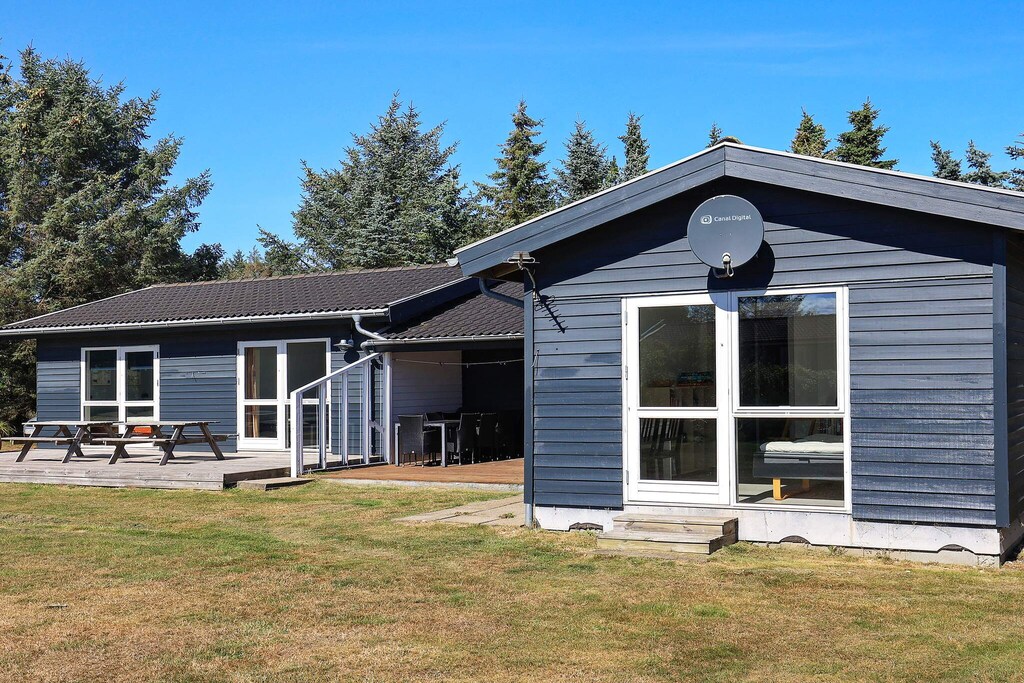 Questo accogliente cottage a Grønhøj si trova su un bel terreno naturale. Il casolare è arredato con una graziosa sala cucina con forno a legna per le giornate fresche. 3 delle camere hanno letti matrimoniali e le altre due hanno ciascuna un letto singolo. Una camera con letto singolo è di passaggio. Dalla cucina-soggiorno e da molte delle stanze si ha accesso diretto ai bellissimi terrazzi dove si può davvero prendere il sole. Una delle terrazze è parzialmente coperta. Il cottage ha due bei bagni. I cani sono ammessi e sul terreno c'è un cortile per cani con un recinto alto 1,15 metri. Il cottage non è lontano sia dalla spiaggia che dai negozi. Accoglienti cottage a Grønhøj sul Mare del Nord.