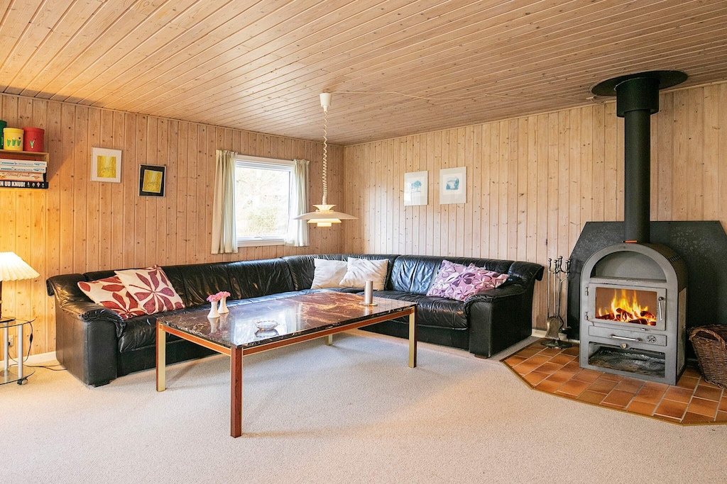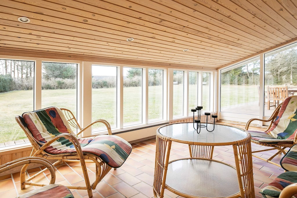 Spaziosa casa per le vacanze situata su un grande terreno per le vacanze vicino all'attraente spiaggia di Grønhøj, considerata una delle migliori del Mare del Nord. Il cottage ha una cucina aperta in connessione con il soggiorno e il soggiorno. Nel soggiorno c'è una stufa a legna per un intimità serale e un riscaldamento economico della casa. Ci sono due bagni, entrambi con riscaldamento a pavimento. Uno ha sia l'idromassaggio che l'accesso alla sauna. Tutta la casa dispone di riscaldamento a pavimento. Il cottage ha anche un grazioso giardino d'inverno con vista diretta e accesso alle terrazze. Intorno alla casa ci sono diversi terrazzi dove si può trovare il sole quasi tutto il giorno. Qui ci sono molte opzioni per es. gioca con i bambini, prendi il sole, rilassati o divertiti intorno alla griglia. Sul grande appezzamento di 2500 m2 della casa c'è molto spazio per giocare, ecc. Per i più piccoli ci sono sia porte da calcio che altalene. Non in affitto a gruppi di giovani.