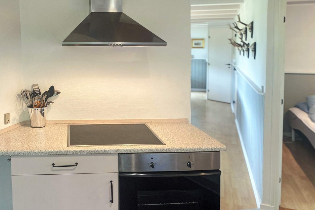 La cucina ben attrezzata si apre sul soggiorno, dove un'accogliente stufa a legna aggiunge calore e atmosfera. Le ampie finestre in tutta la casa garantiscono molta luce naturale e offrono una vista sul paesaggio circostante, creando interni luminosi e accoglienti. Ci sono tre camere da letto piccole ma confortevoli, ciascuna con un letto matrimoniale largo 140 cm, mentre la terza camera da letto ha due letti da 80 e 90 cm. Il bagno è dotato di doccia, lavatrice e asciugatrice, offrendo servizi pratici per un soggiorno confortevole.