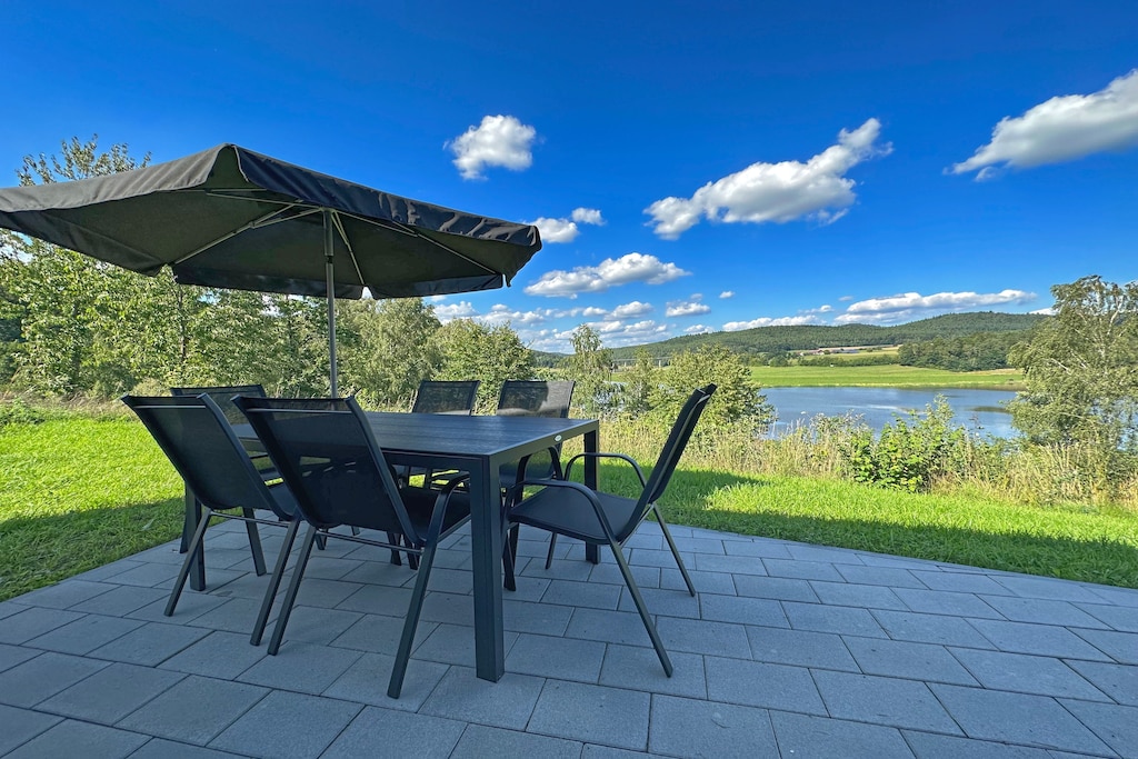 Benvenuti nel tranquillo villaggio turistico Seeblick, adagiato sulle rive del lago Eixendorf, nella Foresta dell'Alto Palatinato. Questo accogliente piccolo chalet offre spazio per famiglie, coppie o amici in cerca di pace e natura. All'interno, troverete una cucina a pianta aperta completamente attrezzata, una zona soggiorno-pranzo, tre camere da letto e due bagni, tutti progettati per garantire comfort e privacy.