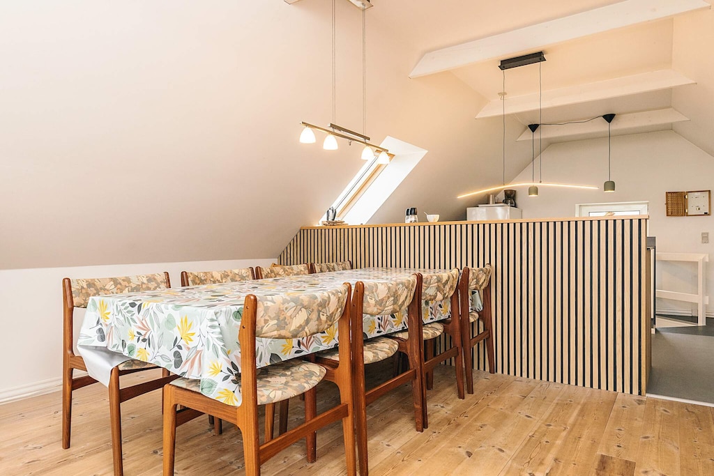 Cottage ben tenuto con una splendida vista sul Limfjord. La casa ha un'ottima posizione a ca. 20 m dal bordo della spiaggia ed è stato modernizzato nel 2013, dove i.a. cucina e bagno sono spenti. Ci sono grate a doghe davanti alle scale che portano al 1 ° piano. Al piano terra si trovano camere da letto e bagni, mentre al 1° piano si trova un ampio soggiorno con collegamento a vista con la cucina. La cucina ben attrezzata dispone di tutti i servizi come frigorifero, piano cottura in vetroceramica, forno, lavastoviglie, cappa aspirante e macchina per il caffè. Dal soggiorno c'è una bellissima vista panoramica di Krik Vig. La casa è moderna e arredata con gusto e ci sono i.a. tv a schermo piatto. Ci sono sia danesi / tedeschi / svedesi e amp; Canali norvegesi Nelle fresche serate ci si può divertire vicino alla stufa a legna della casa e godersi la vista formidabile. La casa si trova su un terreno piastrellato con vista diretta sull'acqua. C'è una grande terrazza rialzata dove è possibile sedersi al riparo e godersi la cena. La casa ha una posizione perfetta per surfisti, kite-surfer m.m. poiché la casa si trova direttamente in una zona perfetta per questo.