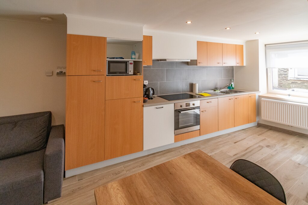 Una tariffa opzionale per servizi e utenze di EUR 150,00 verrà addebitata prima del vostro arrivo. I dettagli sono forniti di seguito.<br> Questa affascinante casa vacanze, perfetta per quattro persone e fino a tre cani, si trova a soli due minuti a piedi dal vivace centro di La Roche. La casa, recentemente ristrutturata, offre una base ideale per godersi il fascino locale e gli splendidi dintorni. La casa dispone di due ampie camere da letto, ciascuna dotata di un letto king-size per un sonno confortevole. In una delle camere troverete una lussuosa poltrona massaggiante, perfetta per rilassarvi dopo una lunga giornata. Il moderno bagno è dotato sia di vasca che di doccia e di un asciugacapelli per una maggiore comodità. La cucina completamente attrezzata non lascia nulla a desiderare e include tutto il necessario per un soggiorno senza pensieri, tra cui lavastoviglie, calici da vino, forno, frigorifero con congelatore, macchina da caffè Nespresso e bollitore. L'accogliente terrazza, accessibile tramite le scale esterne accanto alla casa, offre un luogo tranquillo dove rilassarsi e godersi l'aria fresca. Per l'intrattenimento, è disponibile un televisore da 50 pollici con accesso a Netflix, così potrete guardare i vostri film e serie TV preferiti. Il riscaldamento centralizzato vi garantirà un piacevole tepore in qualsiasi stagione. È possibile parcheggiare gratuitamente in strada, rendendo la vostra esplorazione della zona senza problemi e con tutti i servizi a portata di mano. <br><b> Pacchetto opzionale utenze & servizi </b><br><b> Un pacchetto opzionale di utenze e servizi dal valore di EUR 150,00 </b> può essere selezionato prima del vostro arrivo. Riceverete una comunicazione separata con il link di pagamento qualora vogliate aggiungerlo.<br>Questo pacchetto garantisce un soggiorno senza pensieri e copre comodamente servizi come pulizia finale, consumo delle utenze, assistenza e protezione contro piccoli danni o costi imprevisti durante il soggiorno.<br>Ospiti che lo preferiscono possono gestire questi servizi autonomamente, purché la proprietà sia restituita in buone condizioni al check-out.