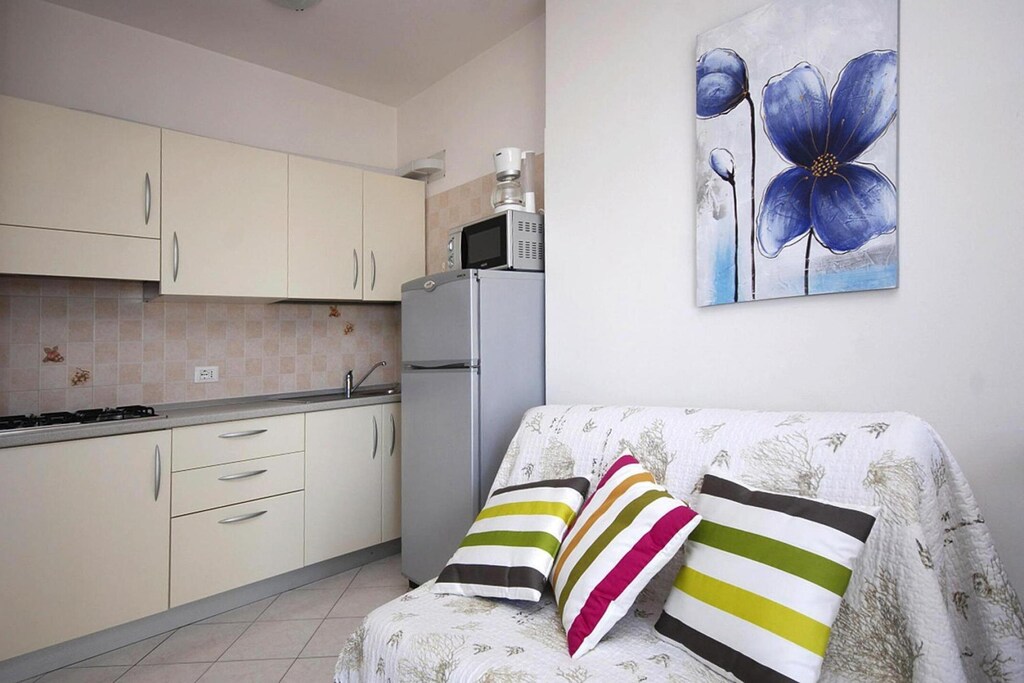 Direttamente sul mare e all'inizio della rinomata località balneare, il vostro appartamento arredato in modo confortevole vi accoglie per una vacanza indimenticabile sull'Adriatico. Non solo le famiglie con bambini e le coppie si sentono a casa in questo fantastico ambiente, anche se viaggi da solo qui sicuramente non ti annoierai. Lasciate spesso l'auto parcheggiata e fate una piacevole passeggiata sul lungomare. Se di tanto in tanto desiderate qualcosa di un po' più tranquillo, ritiratevi semplicemente sul balcone del vostro appartamento e, se siete fortunati, da lì potrete anche godere di una vista parziale sul mare. Potrete prepararvi qualcosa da mangiare nel piccolo angolo cottura, ma ciò che è sicuramente più allettante è la variegata scelta di ristoranti e pizzerie nelle vicinanze.