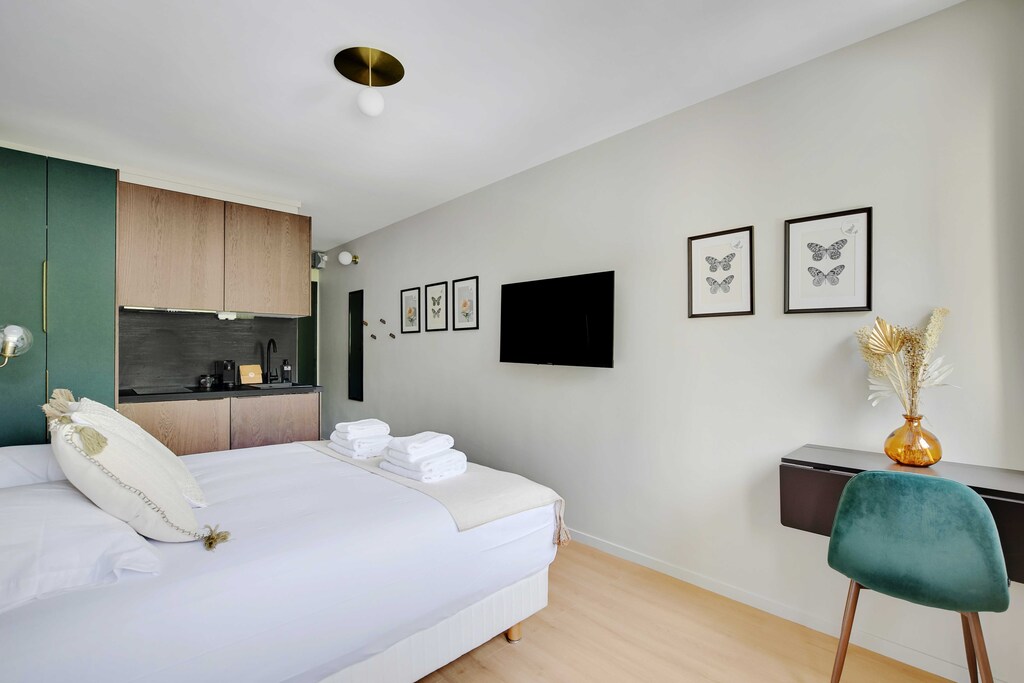 Bequem gelegen in der Nähe von Paris, bietet das Green Suites einen ruhigen Rückzugsort, Das Studio war sauber und hatte alle notwendigen Annehmlichkeiten,